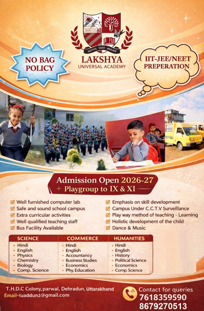 Lakshya Universal Academy was established in 2017 and is known for its high expectations and quality in education. The School has a beautiful campus on the outskirts of Dehradun in Parwal region of Umedpur. Lakshya Universal Academy, Dehradun is well connected to the Chakrata road and is in close vicinity of the iconic structure of the Indian Military Academy and the Forest Research Institute. The school offers opportunity for students to learn a number of skills while having access to quality education. Lakshya Universal Academy believes that children learn well if they are engaged in active learning and teachers guide them as facilitators.